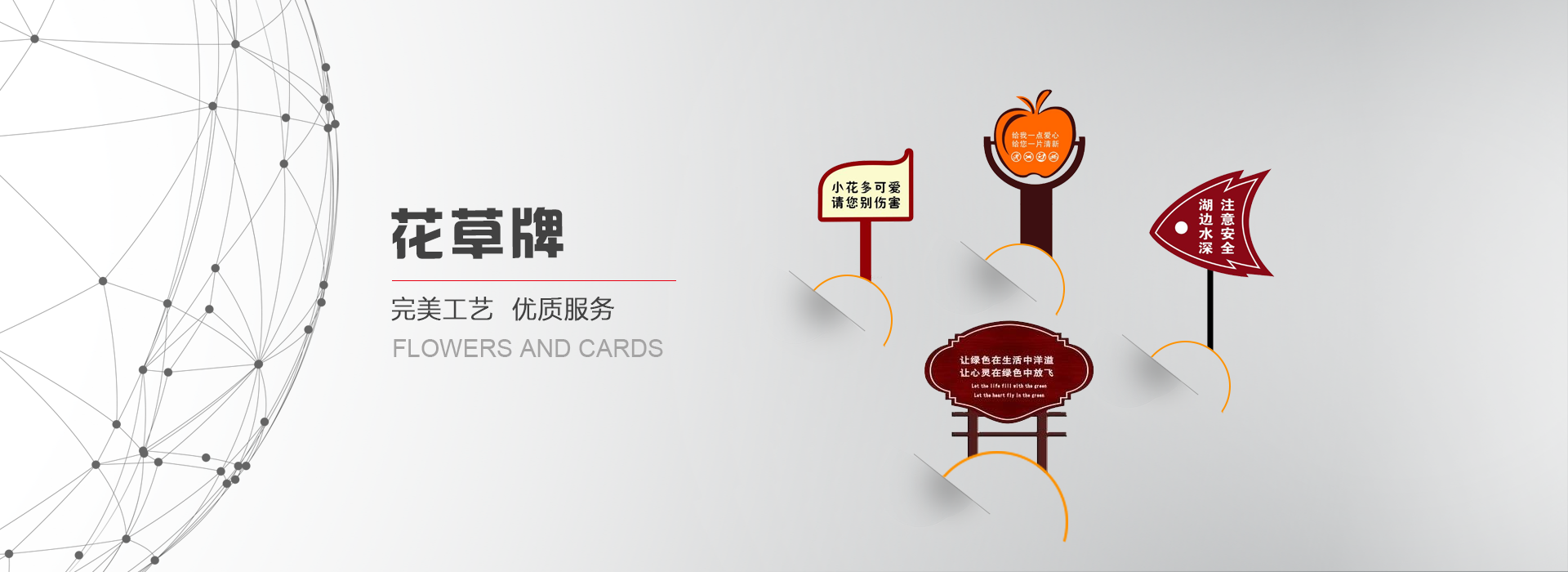 花草牌是指樹立在花草叢中用于提示愛護的標識牌。又稱牌或草牌,屬于溫馨提示的范疇。花草牌一般較矮,一般高度在40公分到1.2米之間,是雙面,厚度一般是4公左右。有鋼板的,有純實木的,或上述材質(zhì)相互結(jié),制作工藝為: