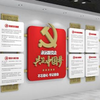 黨建文化墻適用于比較大的前廳,進行政務(wù)公開、黨務(wù)公開的政策宣傳地方使用。通過文化墻推廣宣傳,借墻接穩(wěn)地氣,裝點了企業(yè)文化環(huán)境,進一步提升基層黨建的文化內(nèi)涵,使廣大黨員職工在濃厚的文化氛圍中增長知識,提振精神,凝聚合力,堅定信心永遠跟黨走。