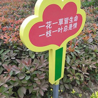 花草牌是指樹立在花草叢中用于提示愛護的標識牌。又稱牌或草牌,屬于溫馨提示的范疇。花草牌一般較矮,一般高度在40公分到1.2米之間,是雙面,厚度一般是4公左右。有鋼板的,有純實木的,或上述材質(zhì)相互結(jié),制作工藝為: